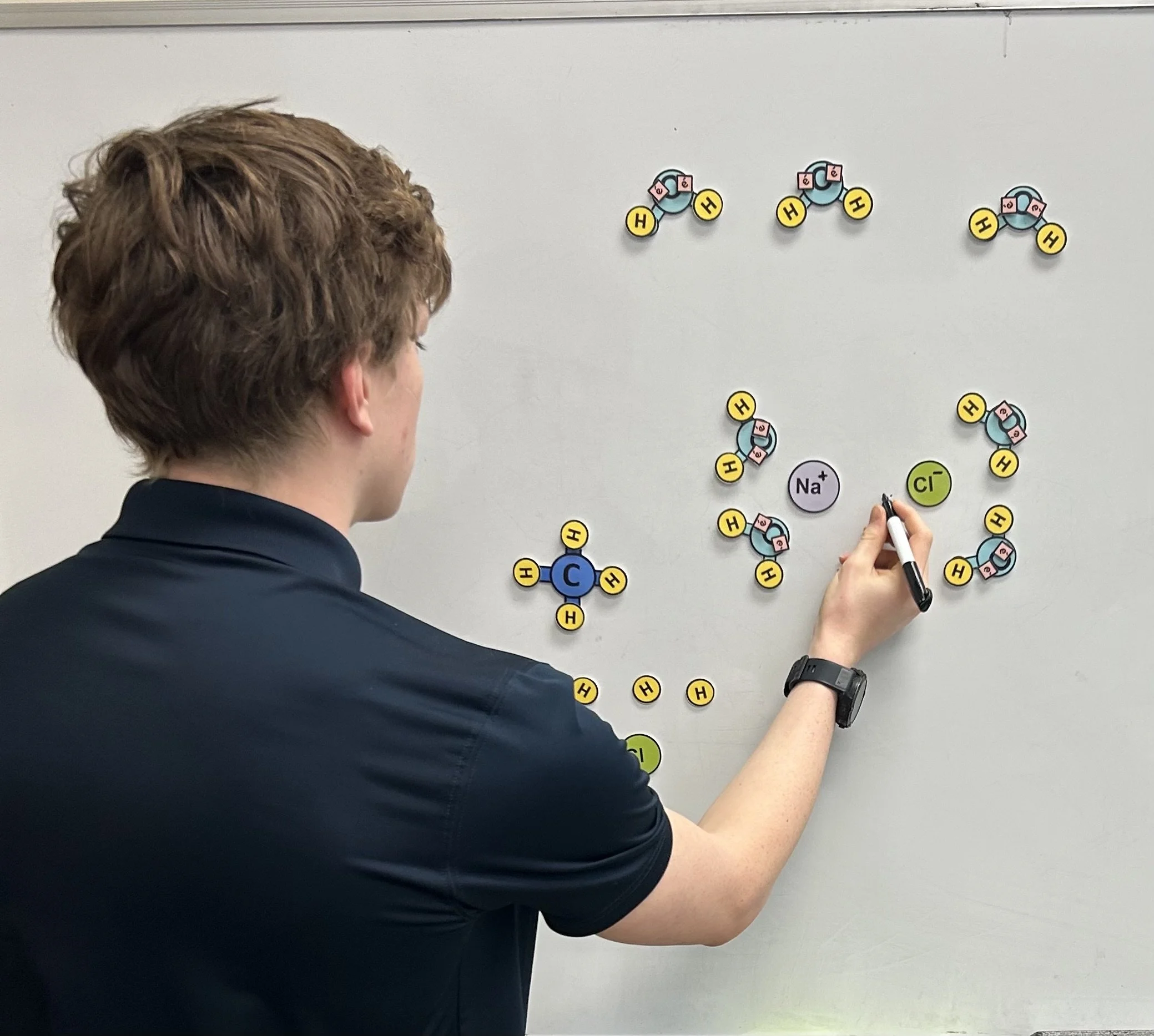 EdMagZ® Environmental Science Magnet Modules include a sequence of hands-on curricula designed to support environmental science, earth science, and life science instruction across a range of grade levels and courses. Module ES1: Properties of Water, Acids, and Bases focuses on molecular interactions that drive environmental systems, with students modeling hydrogen bonding, solvent behavior, buffering, and pH-related processes that influence natural and human systems. Module ES2: Carbon and Nitrogen Cycles guides students in building and revising models of biogeochemical cycles as they trace the movement of matter through biological, geological, and atmospheric components, exploring processes such as fixation, respiration, decomposition, and nutrient recycling. Module ES3: Food Chains, Food Webs, and Cladograms centers on ecosystem structure and energy flow, with students constructing food chains and food webs, analyzing trophic relationships, and using cladograms to examine patterns of relatedness among organisms. By physically placing, labeling, and revising models, these modules help students connect molecular processes, cycling of matter, and ecosystem interactions into a coherent understanding of environmental systems.