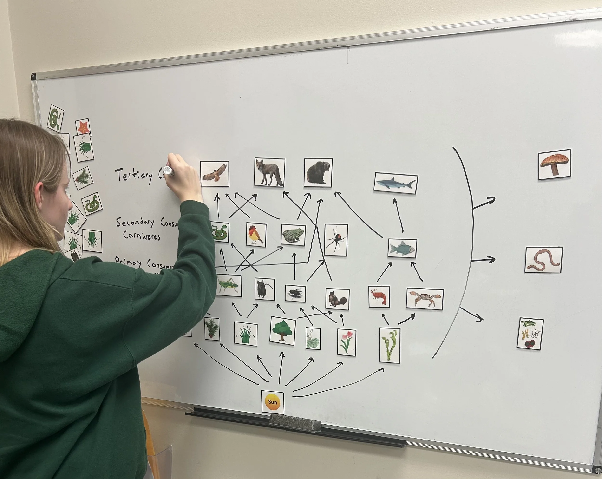 A student using the teacher set for Module ES3 - Food Chains, Food Webs, and Cladograms