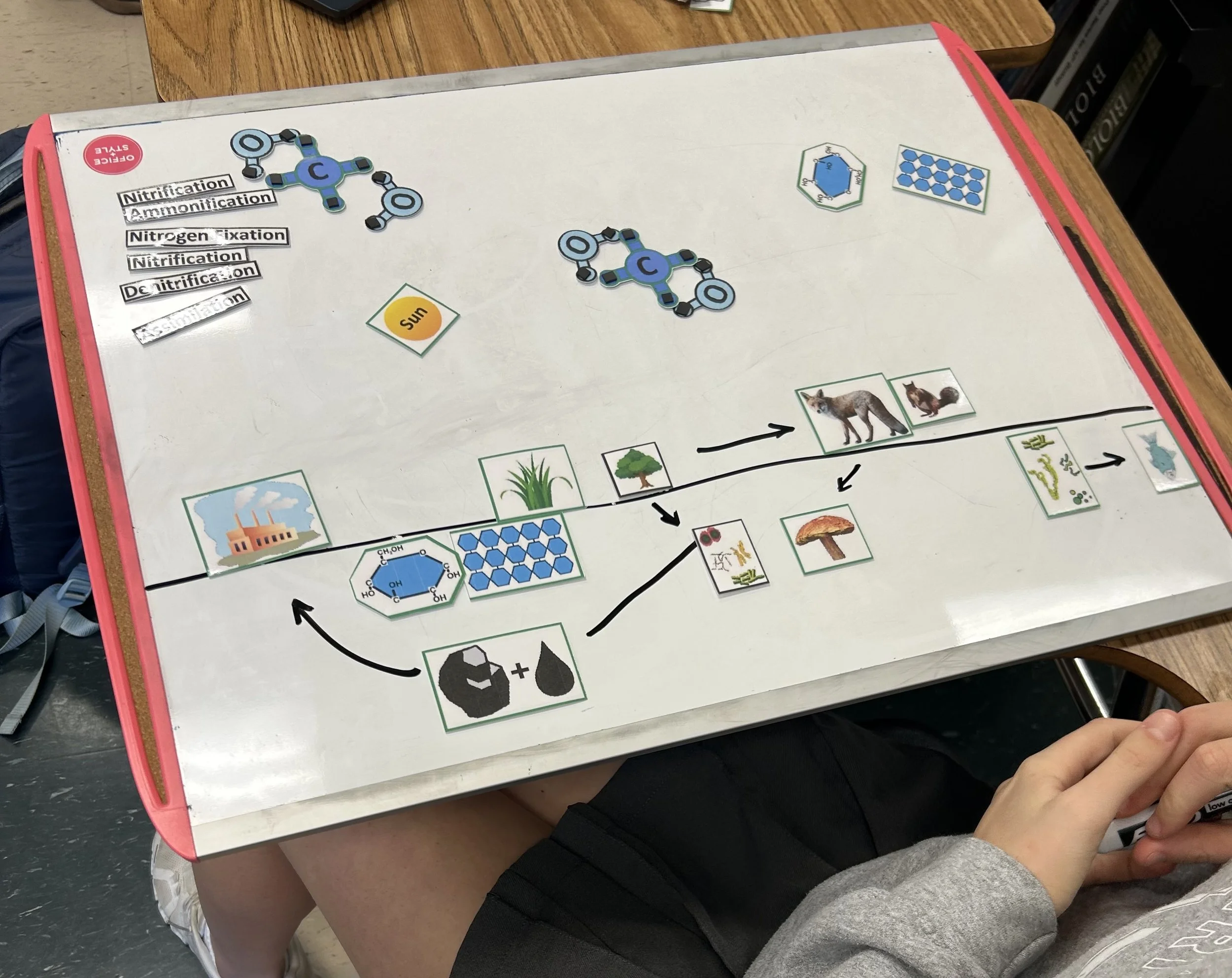 The components match the Student Sets exactly, allowing teachers to model processes, pathways, and structures on the board while students follow along at their desks. This shared visual language helps reinforce understanding and keeps lessons aligned.